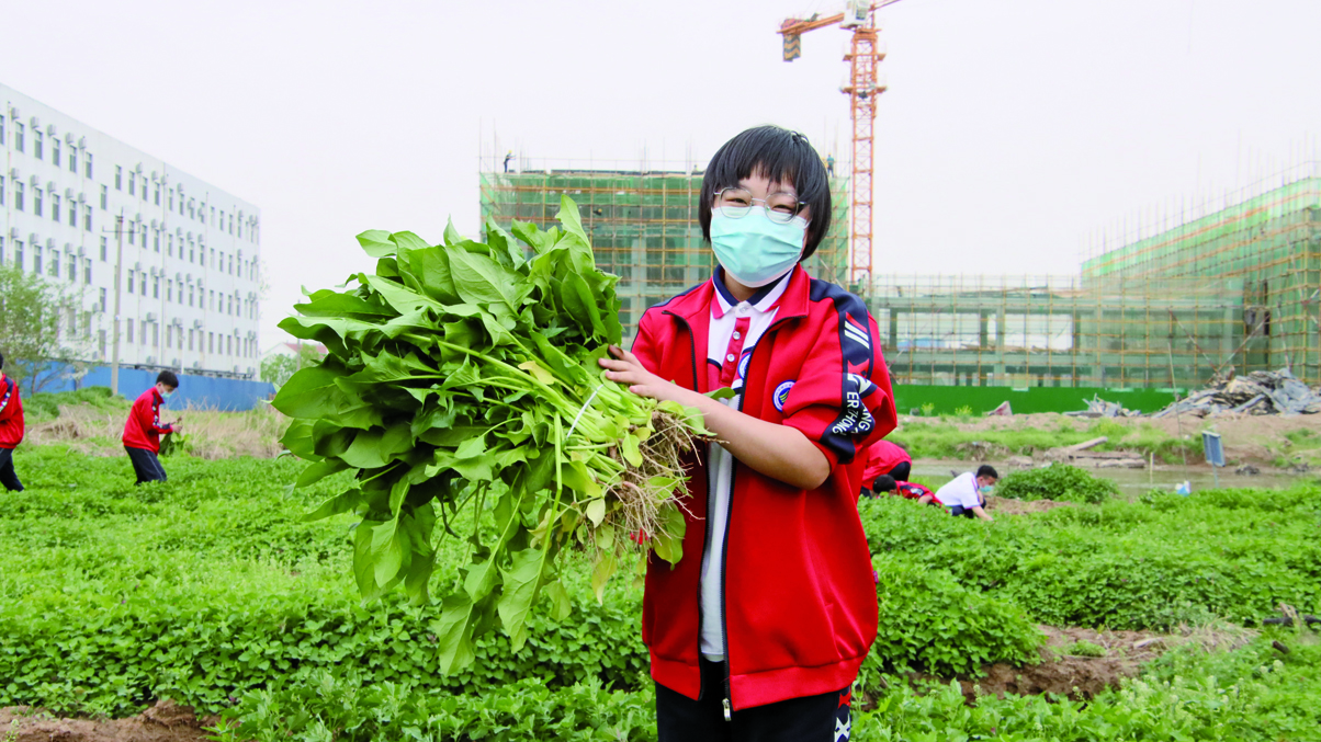 本报讯 晚春时节,阳信二中劳动教育实践基地里种植的菠菜到了收获的季节。4月26日,该校组织学生前往劳动教育实践基地班级“责任田”里拔菠菜,“蓝天下的课堂”让同学们体验到了劳动收获的乐趣。