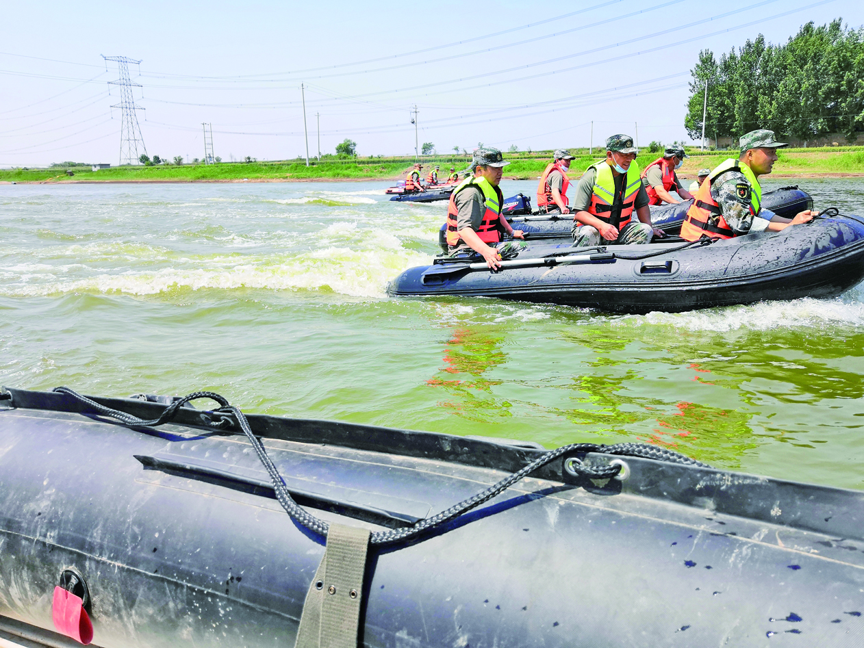 “河道有人落水,3号冲锋舟迅速前往救援!”随着指挥员的一声令下,伴随着舷外机的轰鸣声,由金阳街道三名基干民兵驾驶的3号冲锋舟快速驶向指定水域实施救援。金阳街道武装部副部长韩学军凭借着娴熟的驾驶技术最短时间内到达指定水域,救生员徐宁、观察员夏海涛默契配合,成功将落水人员救起并转移至安全地带,获得了考核组一致好评。 此次由阳信县人武部组织的冲锋舟水上救援训练是为了进一步提升辖区基干民兵水上抢险救援能力,确保强降雨或洪涝灾害发生时能够快速反应、有效处置。(夏海涛)