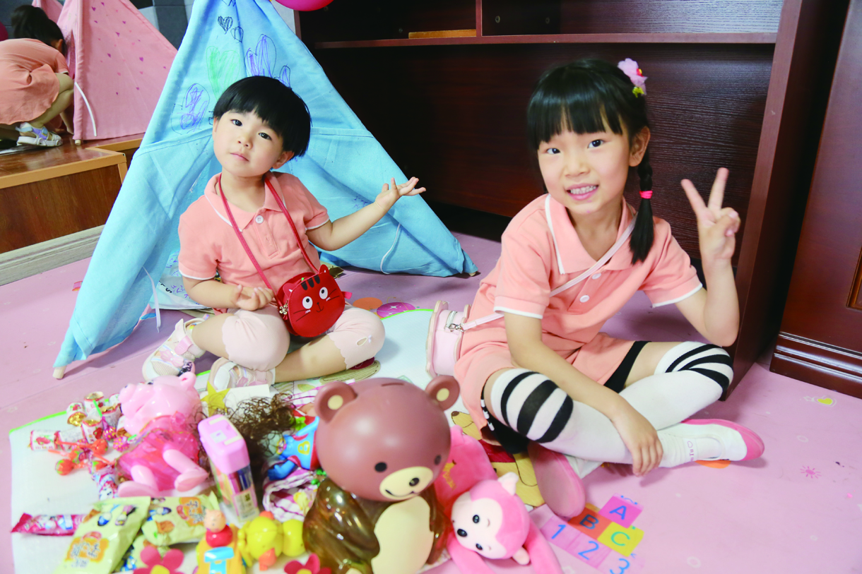 本次活动设计独特、新颖,小、中、大年龄段以“大带小”方式,让纵向班级的孩子们欢聚在一起,为帐篷涂鸦、给自己的“摊位”起好听的名字、两两合作摆放物品。