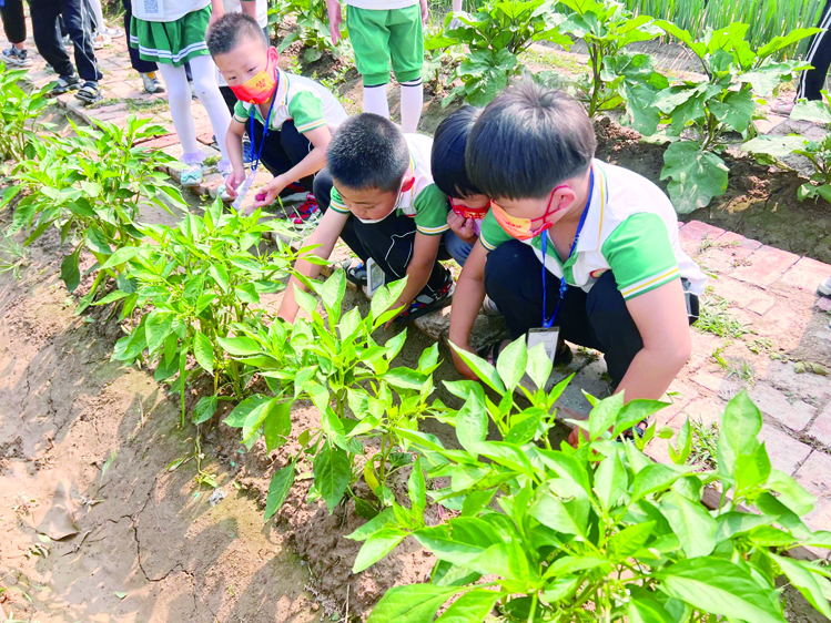 6月15日,河流镇中心幼儿园的孩子们走进自己的综合实践基地菜园,体验农趣。 为真正体现幼儿园自然教育理念,河流镇中心幼儿园充分利用各种资源,因地制宜为孩子们开辟了一块块小菜园,让孩子们在守护种子成长的过程中,感受到生命力的蓬勃,懂得果蔬的来之不易,体验到劳动与收获的快乐,从而养成勤俭节约的美好品德。(李振华)