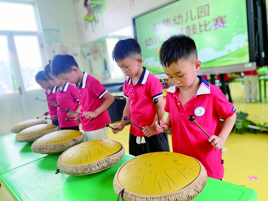 6月17日,金阳街道赵集幼儿园开展幼儿空灵鼓展示与评比活动。(张秀勤)