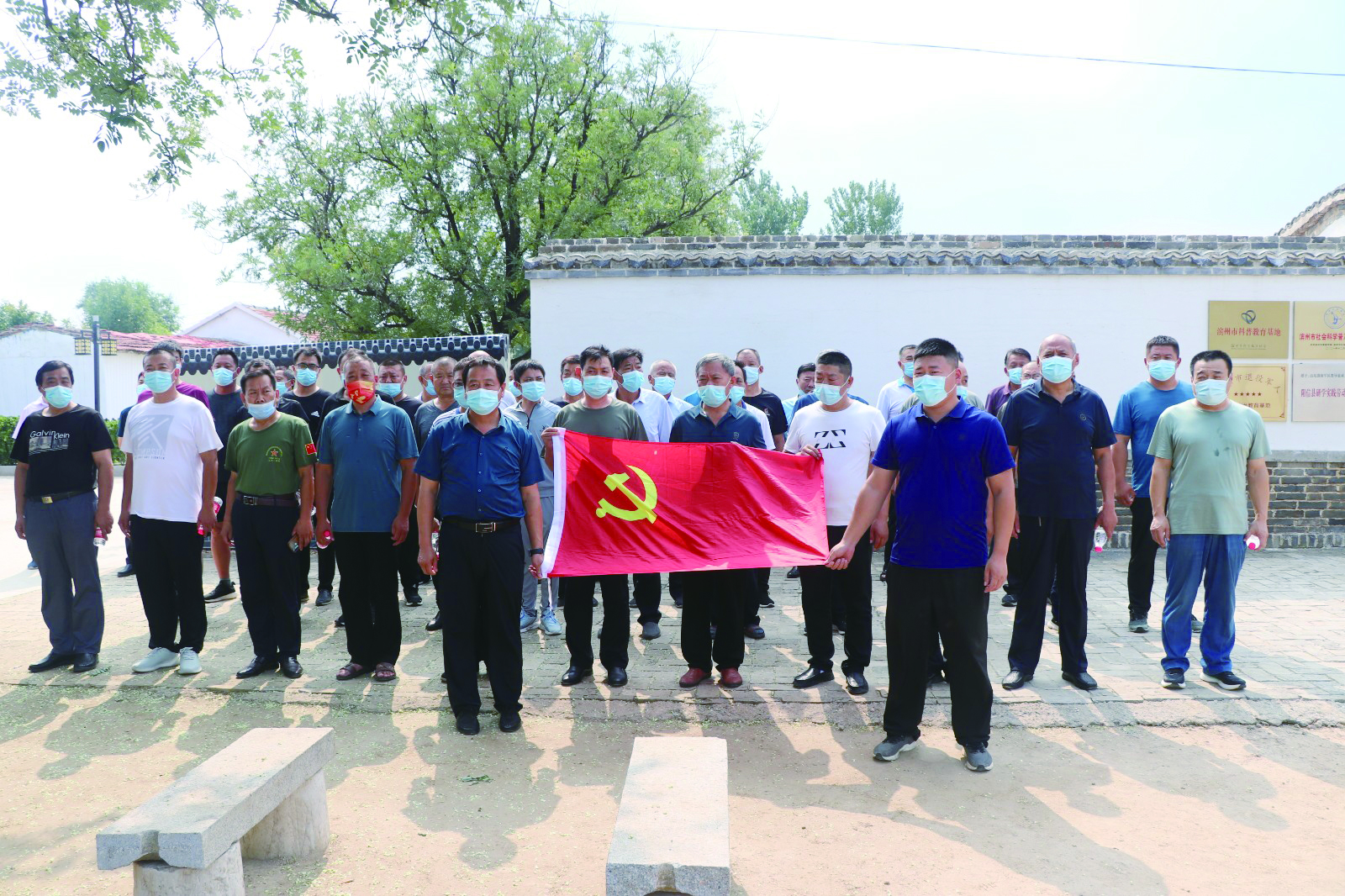 退役军人在渤海军区教导旅成立旧址展馆,参观了革命先辈简陋的生活居住场所,认真聆听解说员讲述革命先辈辉煌的历史事迹、仔细浏览史料简介。在一件件珍贵的革命文物和一幅幅红色的历史图片前,退役军人们驻足凝视,重温革命先辈那段浴血奋战的历史,缅怀铭记那段峥嵘岁月,感受革命先辈英勇顽强的坚定信念和无私奉献的伟大精神。在展馆内,全体退役军人整齐列队,面对鲜艳的党旗,高举右拳,重温入党誓词,庄严宣誓:“我志愿加入中国共产党,拥护党的纲领,遵守党的章程……铿锵有力的宣誓表达了退役军人对党无限忠诚,为共产主义事业奋斗终身的坚定决心。