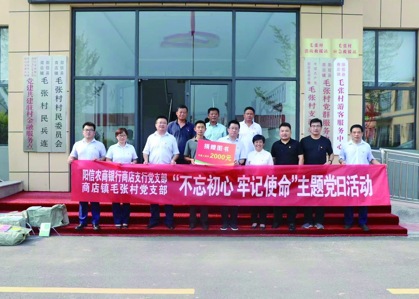 本报讯 8月2日,阳信农商银行商店支行党支部与商店镇毛张村党支部开展“不忘初心 牢记使命”主题党日活动。当日在毛张村举行了捐书仪式,阳信农商银行商店支行党支部向毛张村党支部捐赠了价值2000元的书籍,为这里的广大党员群众送来了精神食粮。