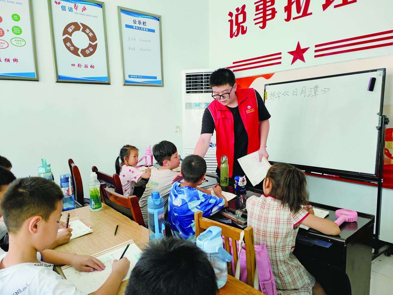 本报讯 “老师,我不知道这个字的笔画顺序。”“老师,这道题我写完了,请你帮我检查一下。”近日,在洋湖乡十字道村,山西农业大学大二的学生王瑞正跟村里其他4名大学生一起在村党群服务中心“小课堂”里专心为孩子们义务补习功课。