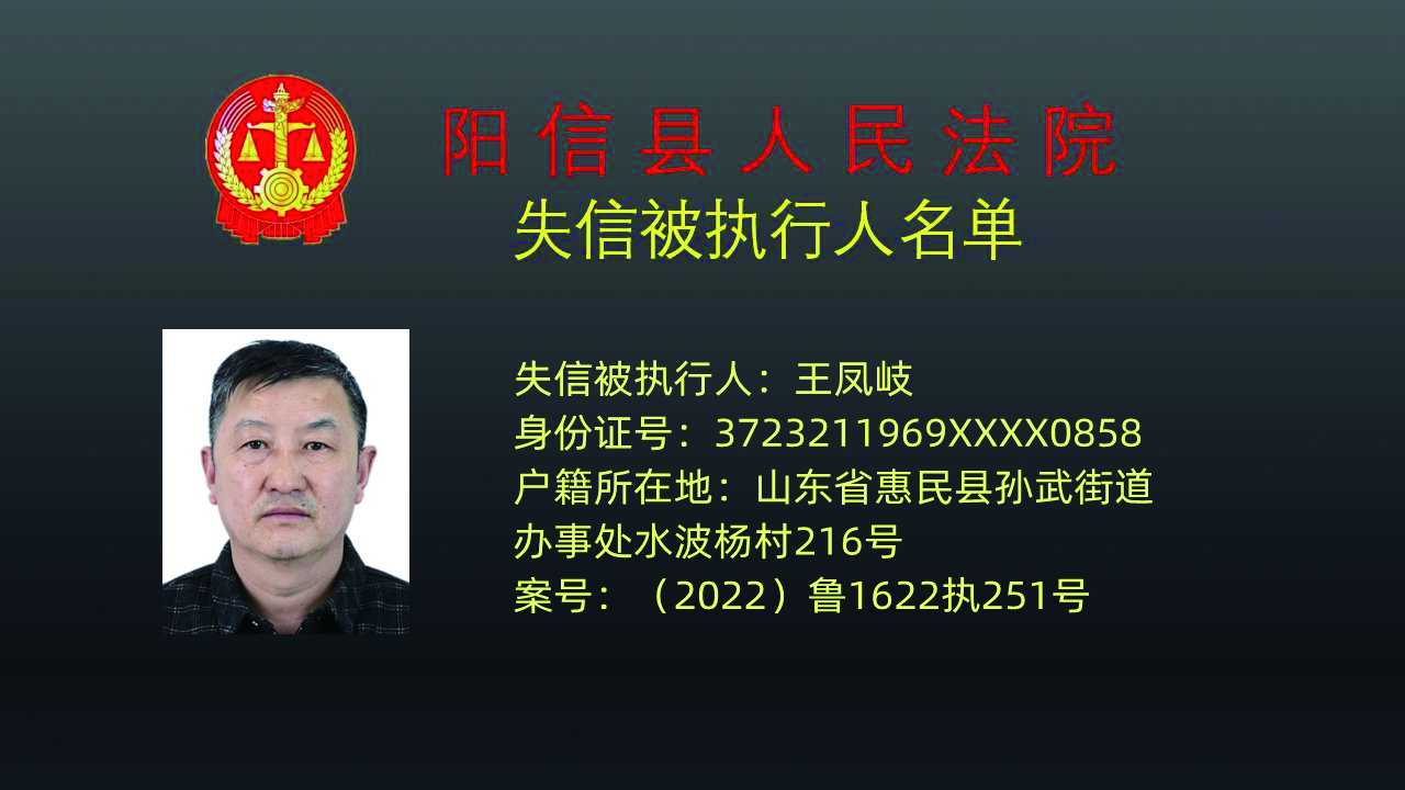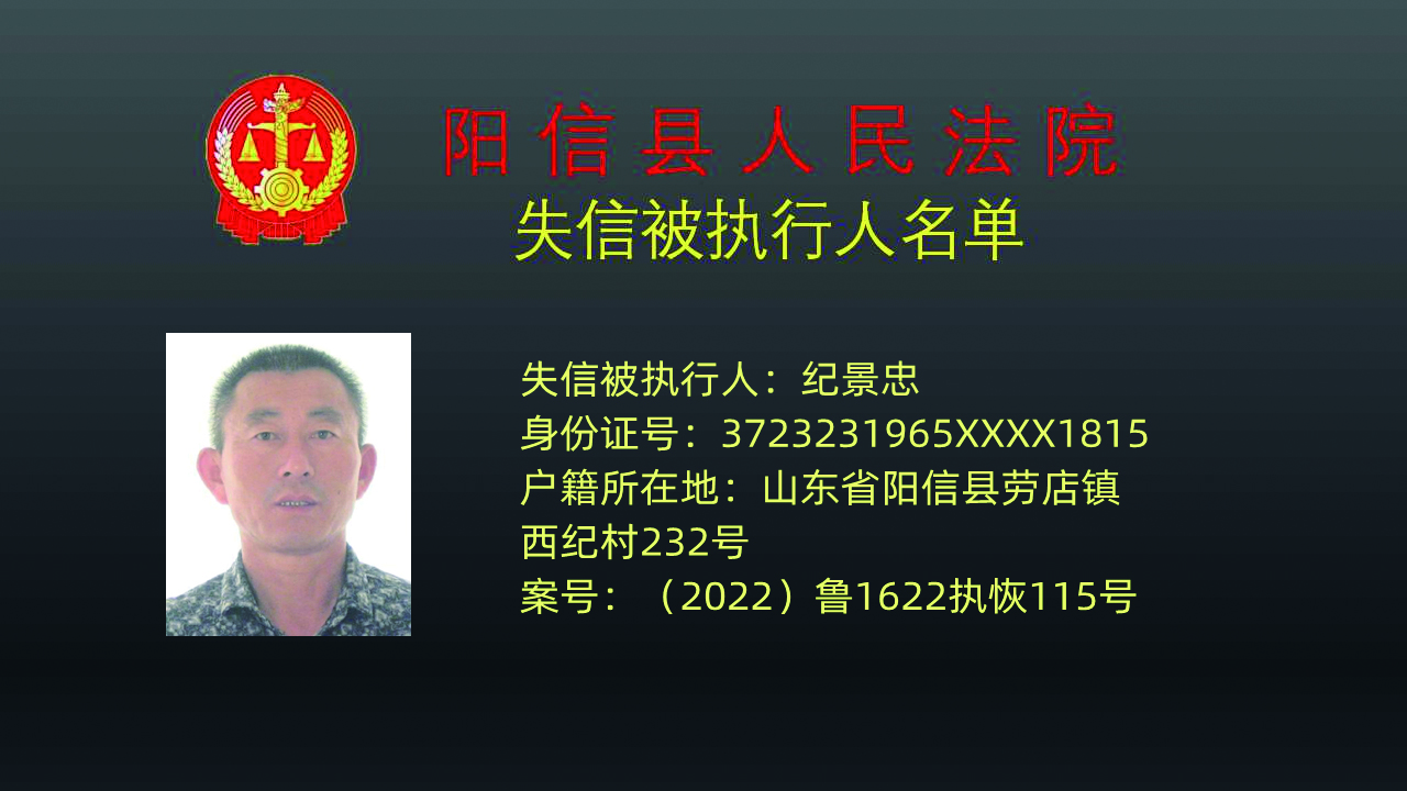 为严厉打击拒不履行人民法院生效判决裁定的行为,依据《最高人民法院关于公布失信被执行人名单信息的若干规定》,阳信县人民法院决定将24名拒不履行生效法律文书确定义务的被执行人纳入失信被执行人名单并予以公开曝光。