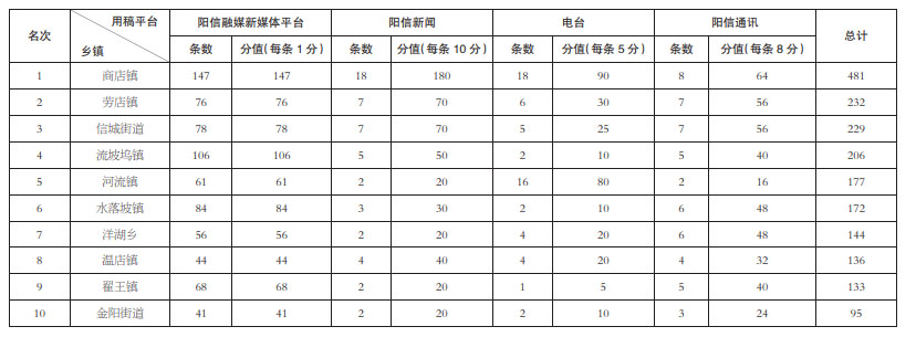 2022年阳信县融媒体中心七月份各乡镇用稿情况通报