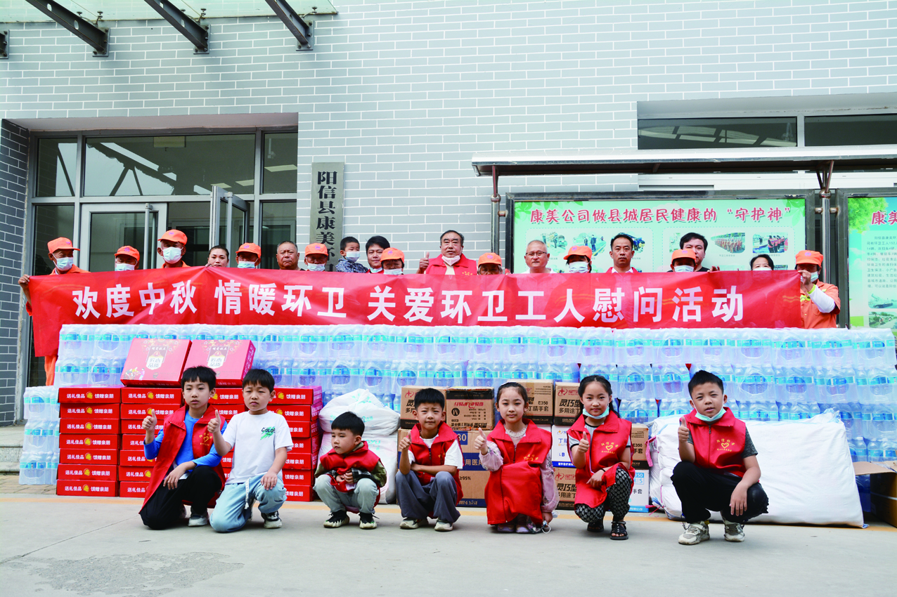 阳信县康美环卫保洁有限公司有环卫工人160多人,主要任务是承担阳信城区路面环境卫生的清扫保洁、垃圾清运、洒水洗扫、抑尘降尘。主要职责是城区环境卫生的清扫保洁、生活垃圾、建筑垃圾的清运、公厕的卫生保洁、小广告、乱涂乱画的清除工作、配合环卫处负责建筑垃圾、生活垃圾乱堆、乱倒和沿路撒落行为,管理权全县城市道路、公厕等公共场所的卫生保洁和城区生活垃圾处理,可以说是阳信县城居民健康的“守护神”。马宗顺了解到阳信是全国卫生县城,山东垃圾分类试点县,环卫工经常冒着酷暑高温上路,对积水垃圾及时清理,工作十分辛苦,就决定在中秋佳节来临之际,慰问环卫工,彰显大爱。阳信康美环卫保洁有限公司经理张振平激动的告诉记者,爱心人士献爱心,将促使把我们的城市打扫的更加卫生靓丽,确保居民身体康健。