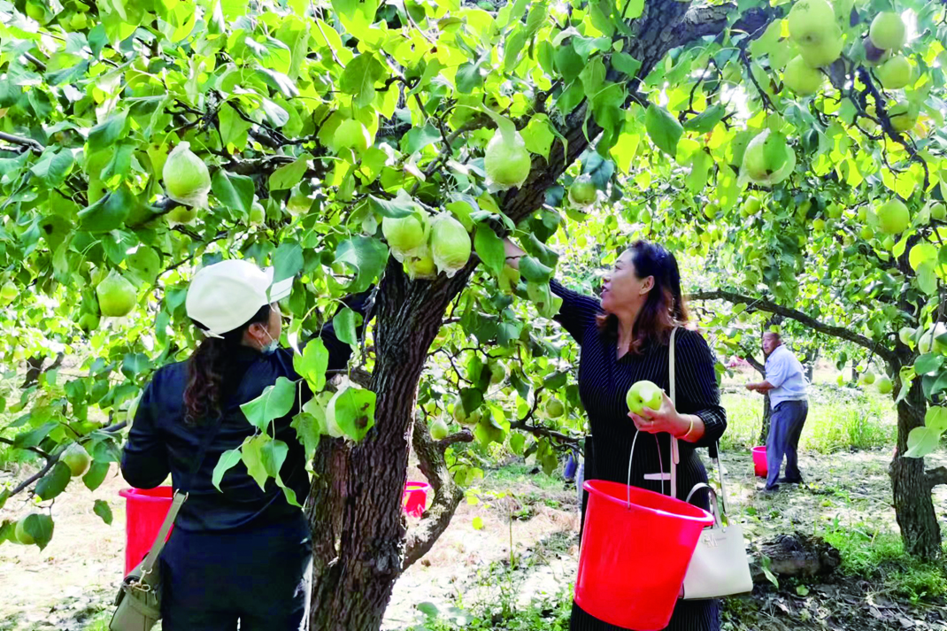 9月17日,位于金阳街道办事处万亩梨园内的鸭梨迎来丰收季,一望无际的梨树上,沉甸甸的鸭梨压弯了枝头,游客们争相入园体验,边走、边看、边摘、边吃,尽情感受田园风光的无限魅力,体验”采摘+观光+体验“乡村游带来的乐趣。 近年来,金阳街道在推进乡村振兴战略中围绕农业及百年梨园的资源优势,大力发展梨产业,打造了百年梨园、王集采摘园等生态农业观光园园区,推进现代农业与乡村旅游相融合,助力乡村振兴和发展。 (贾士清)