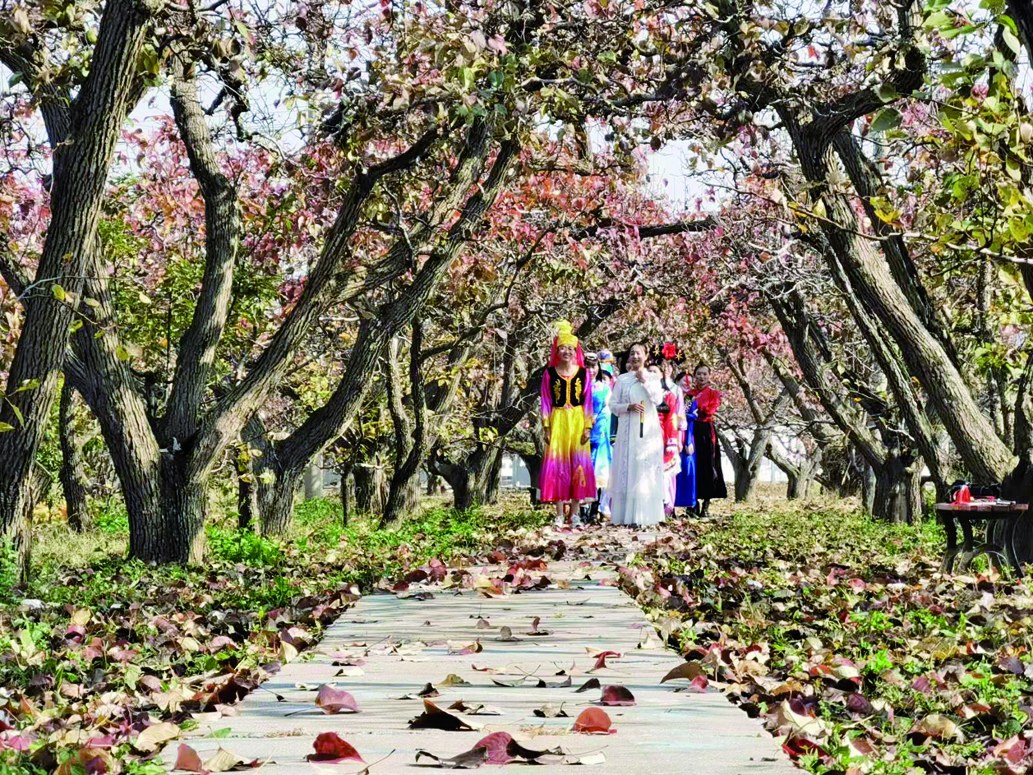 每年10月至11月,阳信境内的鸭梨树叶流丹,红叶竞相斗艳,地被红叶遮掩,水被红叶浸染,道被红叶铺成,一丛丛,一片片的霜染红叶延绵几多公里,形成的令人失魂夺魄的壮美景色被游人称为“十里云霞”,成为鲁北大地最佳红叶观赏区和周边省市摄影爱好者的红叶定点拍摄基地。(本报通讯员)