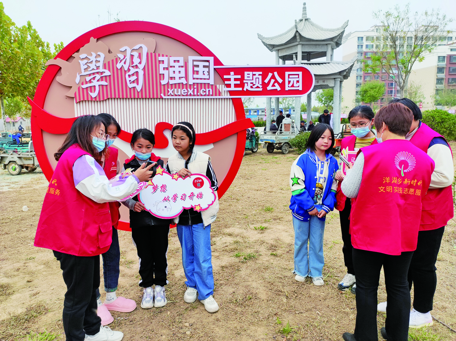 本报讯 为进一步增强“学习强国”学习平台用户的互动性和参与性,洋湖乡依托辖区万博商贸城打造首个“学习强国”主题公园。10月29日,新时代文明实践站志愿者为在主题公园内游玩锻炼的群众提供“学习强国”平台学习体验,掀起爱党爱国爱学习的热潮。