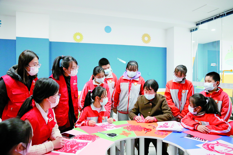 本报讯 为弘扬优秀传统文化,增强青少年的民族自信心和自豪感,11月4日,信城街道九龙湖“红石榴”社区联合“双报到”单位县委政法委开展“弘扬传统文化 传承剪纸艺术”青少年剪纸活动。