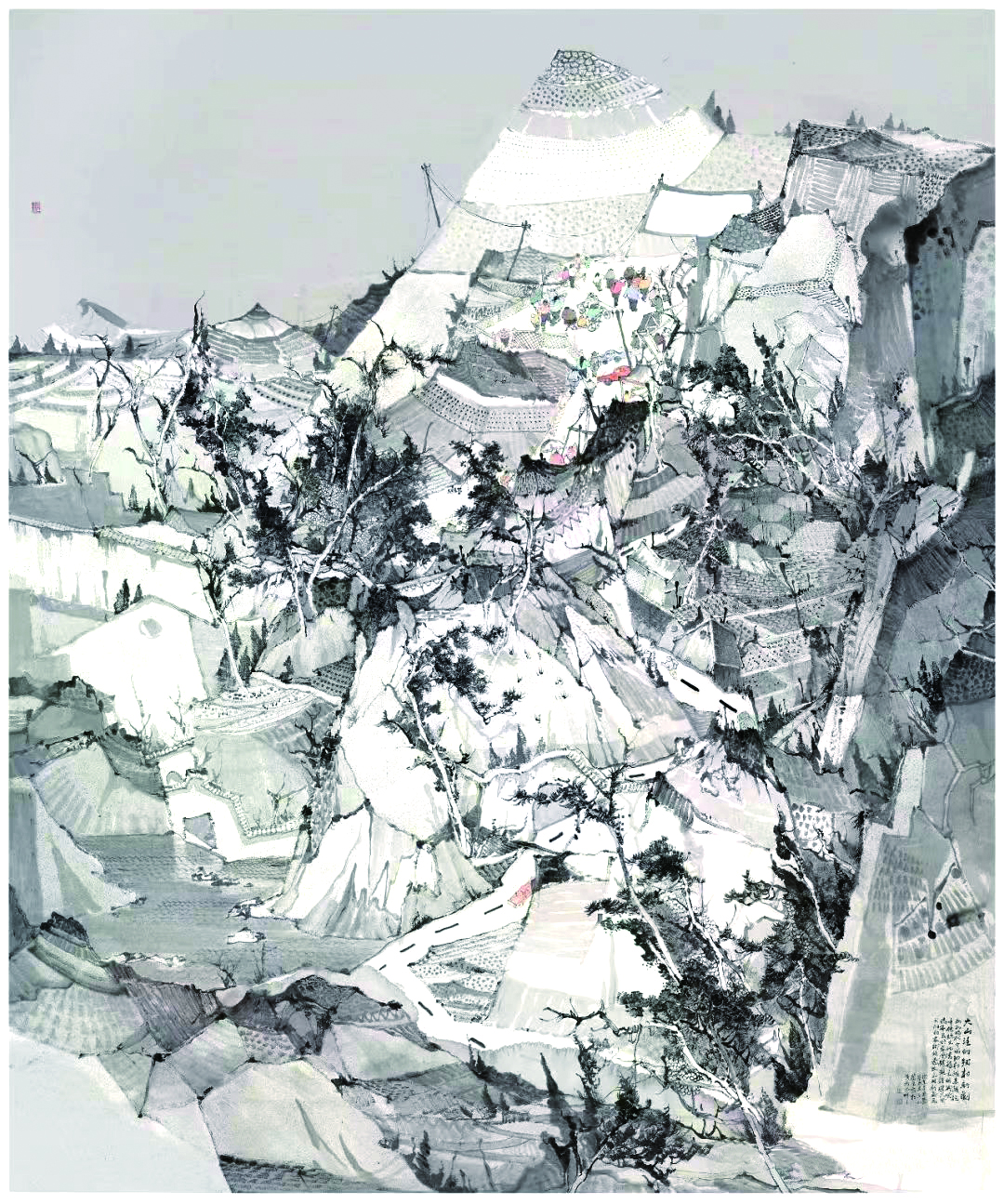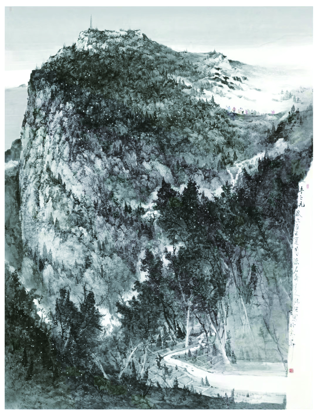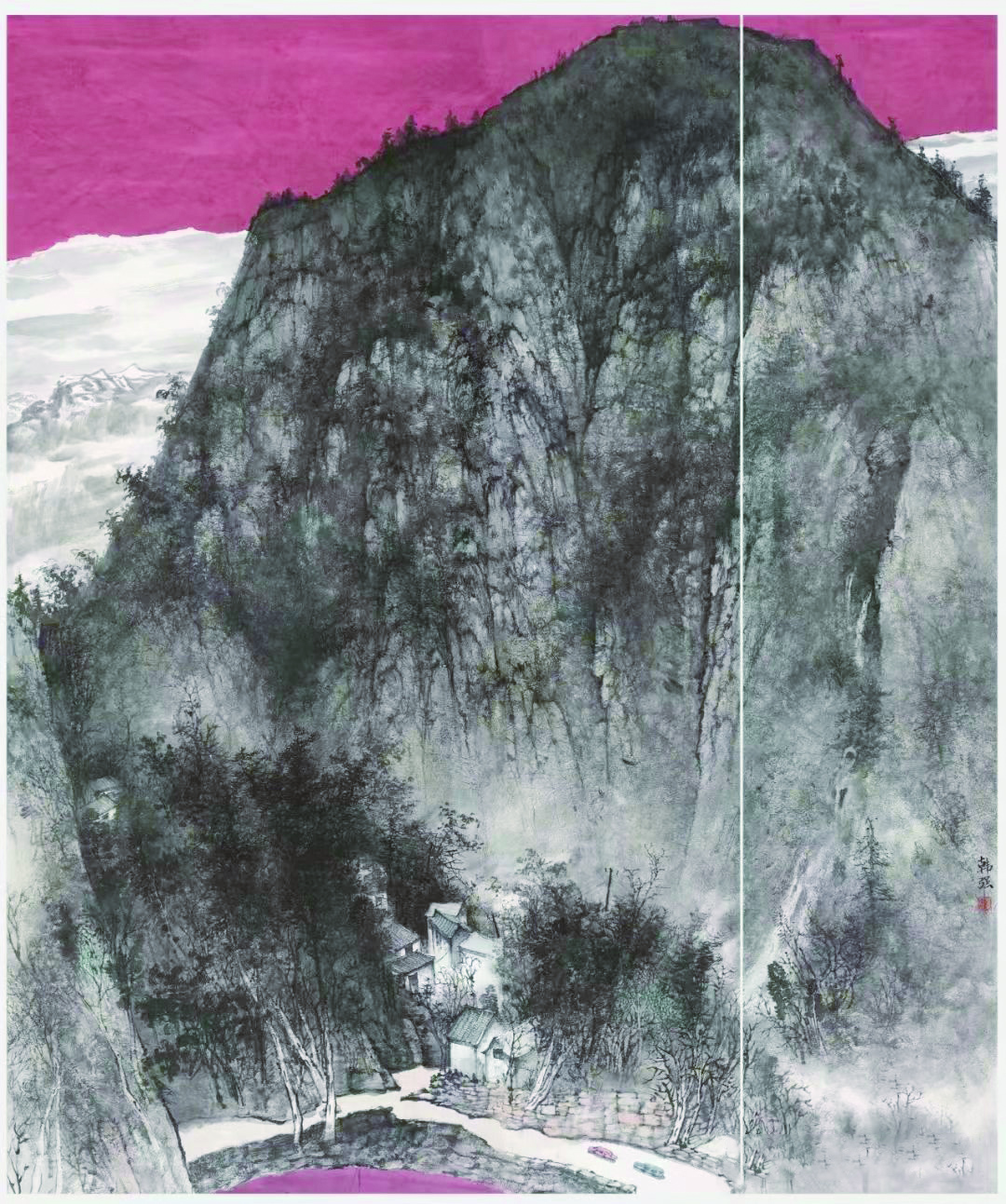 韩强在接受采访时告诉笔者:“绘画的想象力须建立在对大自然亲密接触的基础上,即所谓有感而发,就如石涛所说的搜尽奇峰打草稿,唯有不断地走、不断地看,才能把不同山体在不同时节的气势、面貌了然于胸,才能创作出想象充沛、超凡入圣的作品。我的创作灵感源于对名山大川以及沧桑古木深深的热爱。山水,使我更为自由表达我的感情,她蕴藏着大自然深厚、宽广甚至悲怆,那千年屹立不动的大山所展现的沉默与悲壮使我感动。那潺潺的河流永不停息的精神让我神驰向往,所以我离不开山水,我要抒写山水,走进大山,走近大自然,和树木对话,与花鸟相约,才能让作品更生动自然”。