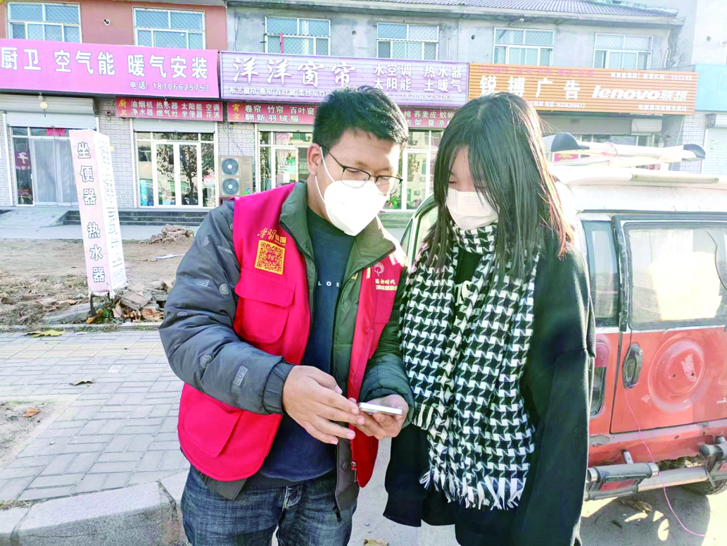 志愿者来到街头,向过往群众宣传推广“学习强国”学习平台,“‘学习强国’学习平台内容丰富,既能知晓国家大事、时政要闻,又能学习专业知识,提升工作技能。还可以播放红色电影、收听广播、观看直播、挑战答题等,通过累计积分还能进行奖品兑换……”