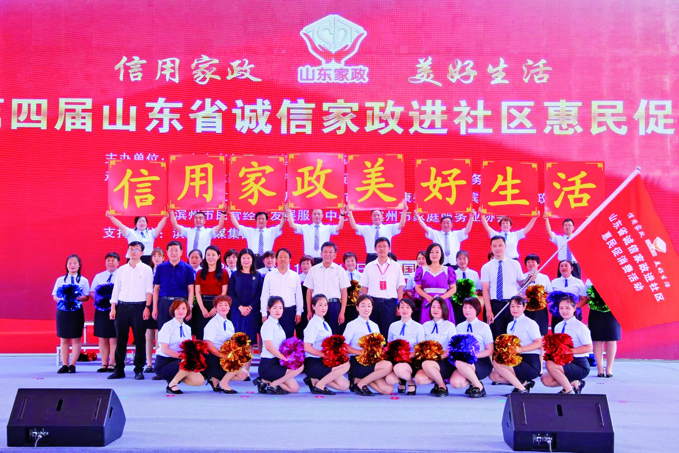 4.为进一步宣传推广家政服务信用信息平台应用,加快我县家政服务业信用体系建设,优化家政市场供给,引导促进家政消费,2022年6月11日,由山东省商务厅、滨州市政府主办,由滨州市家庭服务业协会、山东省阳信春晖物业管理有限公司承办的第四届山东省诚信家政进社区惠民促消费活动启动仪式在滨州市大剧院广场举办。