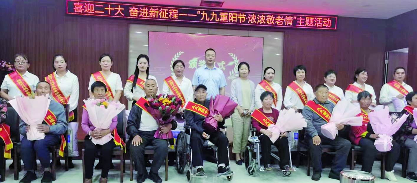 5.2022年9月份,我们组织了“喜迎二十大-奋进新征程,九九重阳节·浓浓敬老情”主题活动,本次活动,邀请了民政局局长王强同志参加,通过举办此次活动,进一步丰富了老年人的生活,营造了尊老、敬老、爱老、助老的浓厚氛围。