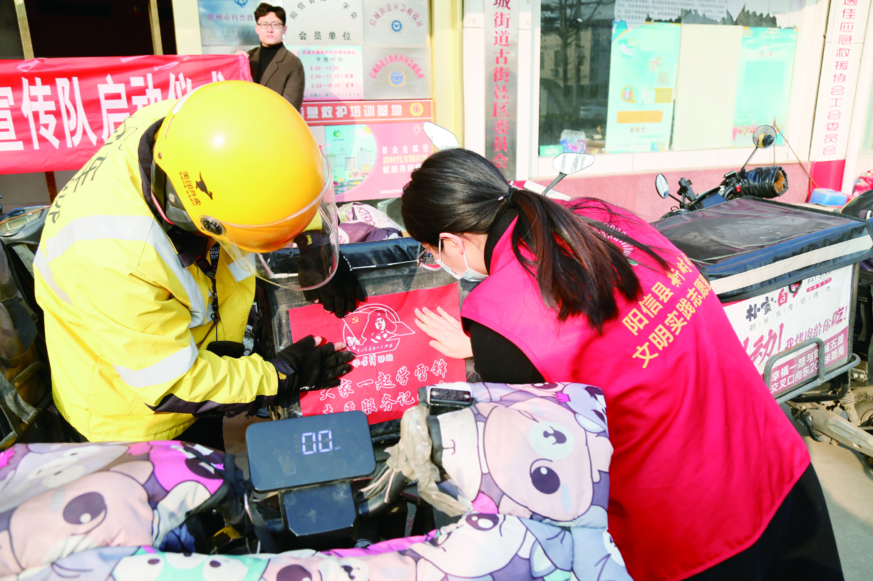□通讯员 武文菊 王培鑫 报道 本报讯 为弘扬雷锋精神,引领广大市民自觉提升社会责任意识和奉献意识,2月16日下午,信城街道成立“红装速递·新信相融”雷锋精神流动宣传队。 信城街道将坚持发挥党员干部先锋带头作用,树立党员干部良好形象。坚持与时俱进、探索创新,结合实际创造性开展服务活动。利用好“学雷锋驿站”工作阵地,擦亮“红装速递·新信相融”服务品牌,整合社会资源,创新活动形式,丰富工作内容,让雷锋精神在宣传中经久不衰,永葆青春。