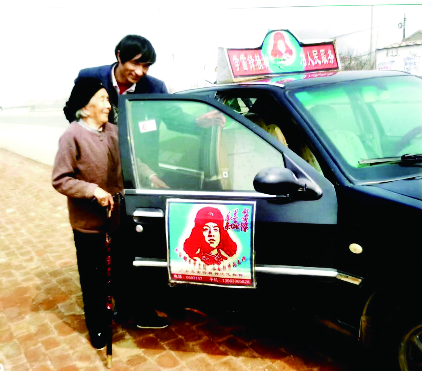 在我县,人们经常能看到一辆特别的出租车,车头上贴着雷锋头像,还有“残疾人用车、困难人用车”等十几项免费服务承诺。这就是山东省岗位学雷锋标兵杨广和的“雷锋车。”