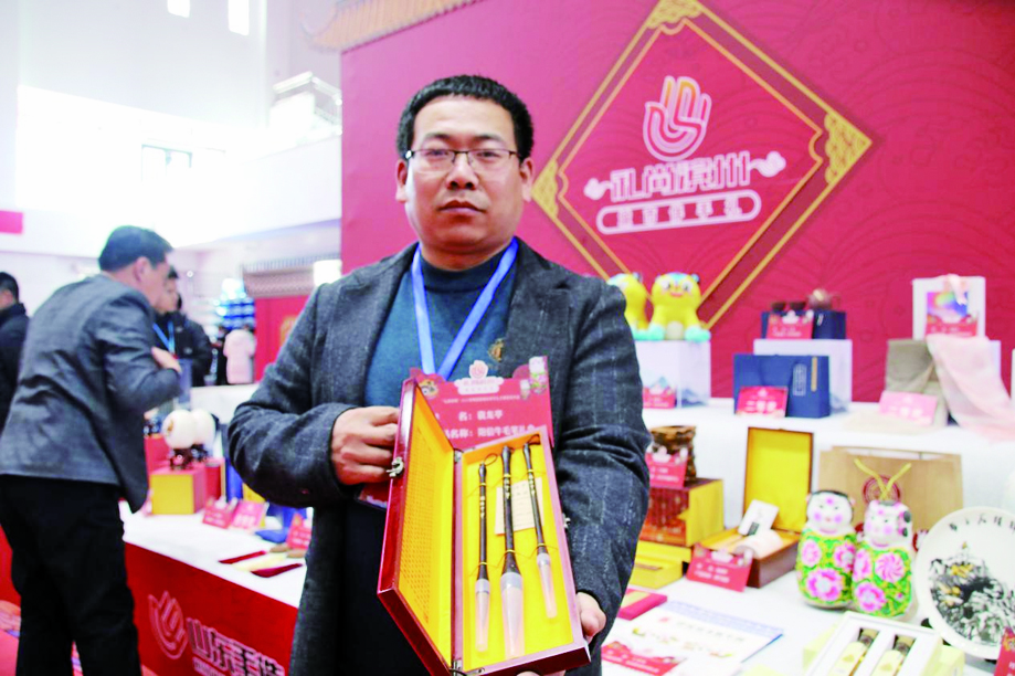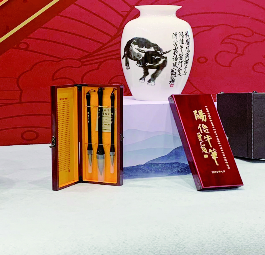 我县积极组织企业参加城市伴手礼大赛,最终阳信牛骨瓷瓶、阳信牛毛笔礼盒等产品入围获奖,在“礼尚滨州”展区进行专门展示。