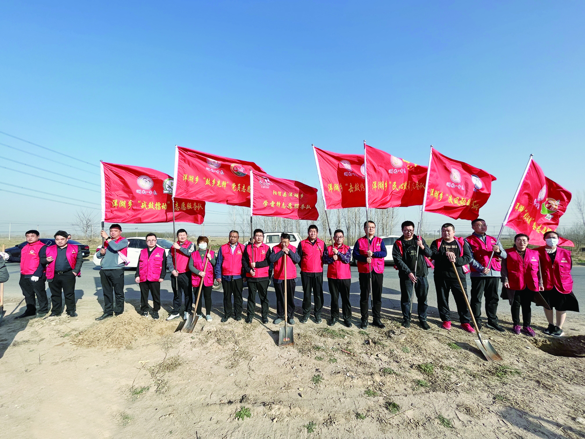 本报讯 在全国第45个植树节到来之际,为大力弘扬“奉献、友爱、互助、进步”的志愿服务精神,近日,洋湖乡组织各志愿服务队志愿者在温韩路一支干路段参加“植树护绿 保护家园”义务植树志愿服务活动。
