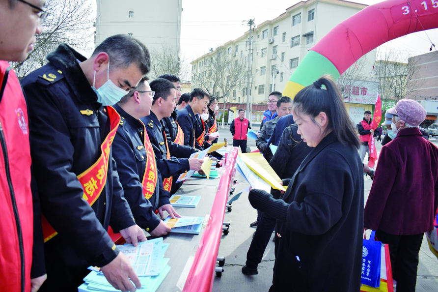 本报讯 为进一步倡导理性消费,提升群众消费维权意识,维护消费者的合法权益,3月15日上午,县市场监管局、消费者协会、公安局、行政执法局、司法局、农业局、消防大队、阳信县副食品贸易行业协会、人民银行等22个单位、企业在梨园广场开展以“提振消费信心”为主题的消费者权益保护日普法宣传活动。副县长苏鲁彬参加活动。