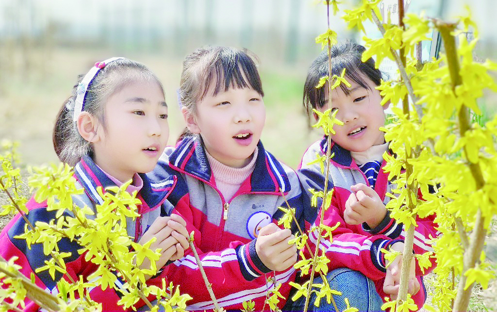 3月28日,河流镇陈家小学三年级和五年级的同学们带着哪些是中草药、有什么功效等问题走进百草园,采用项目化研究的方式去探索神奇的中草药。(任天雨 范东萌)