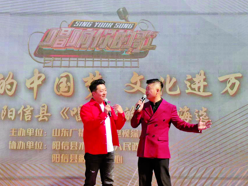 4月2日,在阳信第三十四届梨花会暨第十三届黄河三角洲民俗文化节期间,山东综艺频道《唱响你的歌》开启阳信赛区海选,主持人点点、宇鑫,携综艺频道明星艺人陈甫名、王媛媛、王建淼面向全县寻找爱唱歌有梦想的普通人。 (本报记者 翟成新)