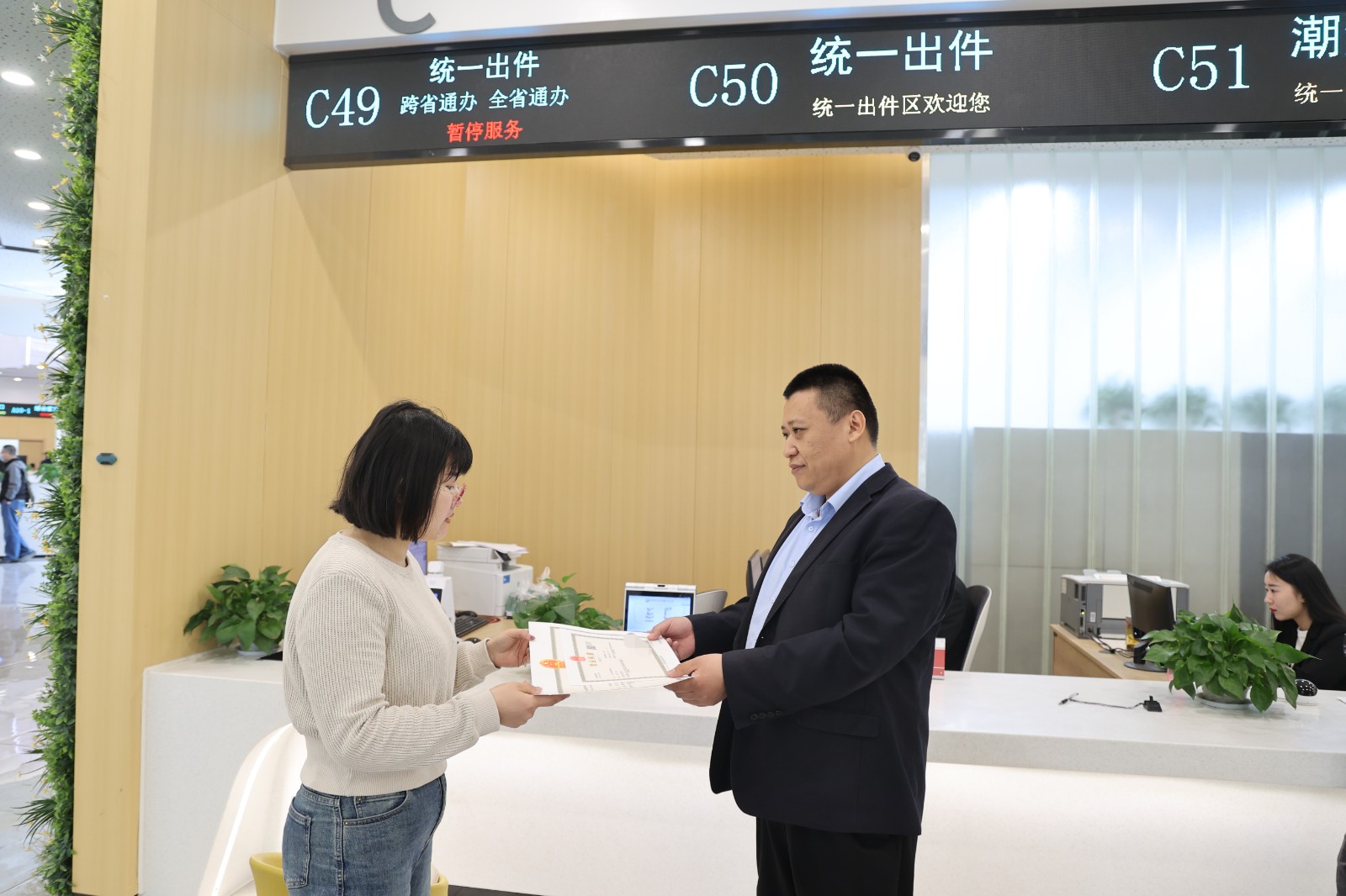 本报讯 4月18日,在阳信县政务服务中心工作人员的帮助下,杨女士很快就拿到了烧烤店营业执照、食品经营许可证,对中心为民排忧解难的倾情服务与务实作风表示赞许。
