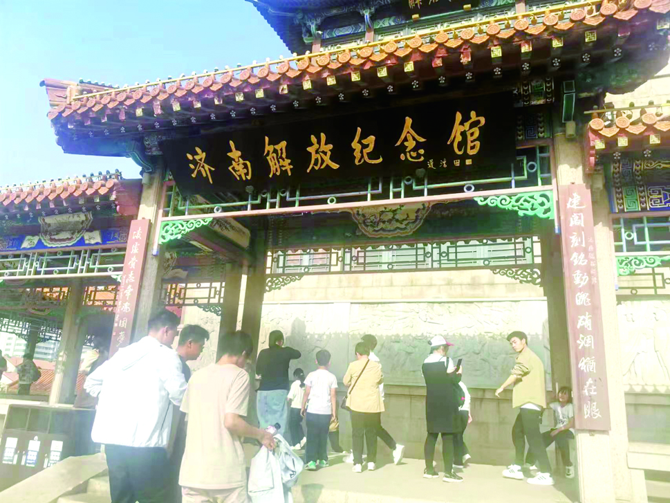 师生们先后参观了济南战役革命烈士纪念碑以及纪念大厅、观瞻厅等主体部分,重温了人民解放军攻克济南的壮烈历史。纪念馆内陈列的各种照片、文献资料等珍贵文物仿佛把队员们带回了战火纷飞的年代,大家被革命烈士顽强拼搏、英勇作战、不怕牺牲的精神而深深触动,并对他们肃然起敬。大家在革命文物前纷纷驻足,战士们曾经穿过的衣服,戴过的头盔;用过的步枪、手榴弹和弹夹……一件件革命文物背后,记录着烽火连天的峥嵘岁月,也诉说着革命先辈的光荣梦想。馆内的一件件实物、一幅幅老照片,全面立体展现了先辈们不畏艰险、不怕牺牲的英雄气概,深入了解了当年为解放济南壮烈牺牲的解放军战士英勇事迹,真切感受了济南战役波澜壮阔、艰难曲折的辉煌历程,被革命烈士抛头颅洒热血,视死如归的精神所震撼,感悟革命成果与美好生活的来之不易。