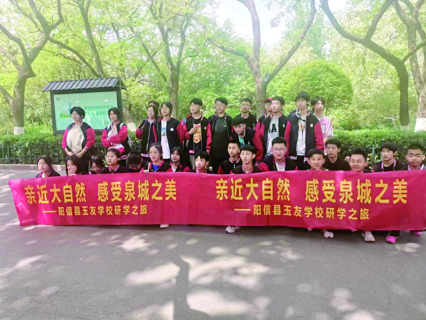 4月19日, 我县玉友学校的800多名师生和部分学生家长在董事长郝玉友的带领下,驱车150多公里到济南解放阁开展红色研学活动,缅怀革命先烈,传承红色基因,汲取奋进力量。