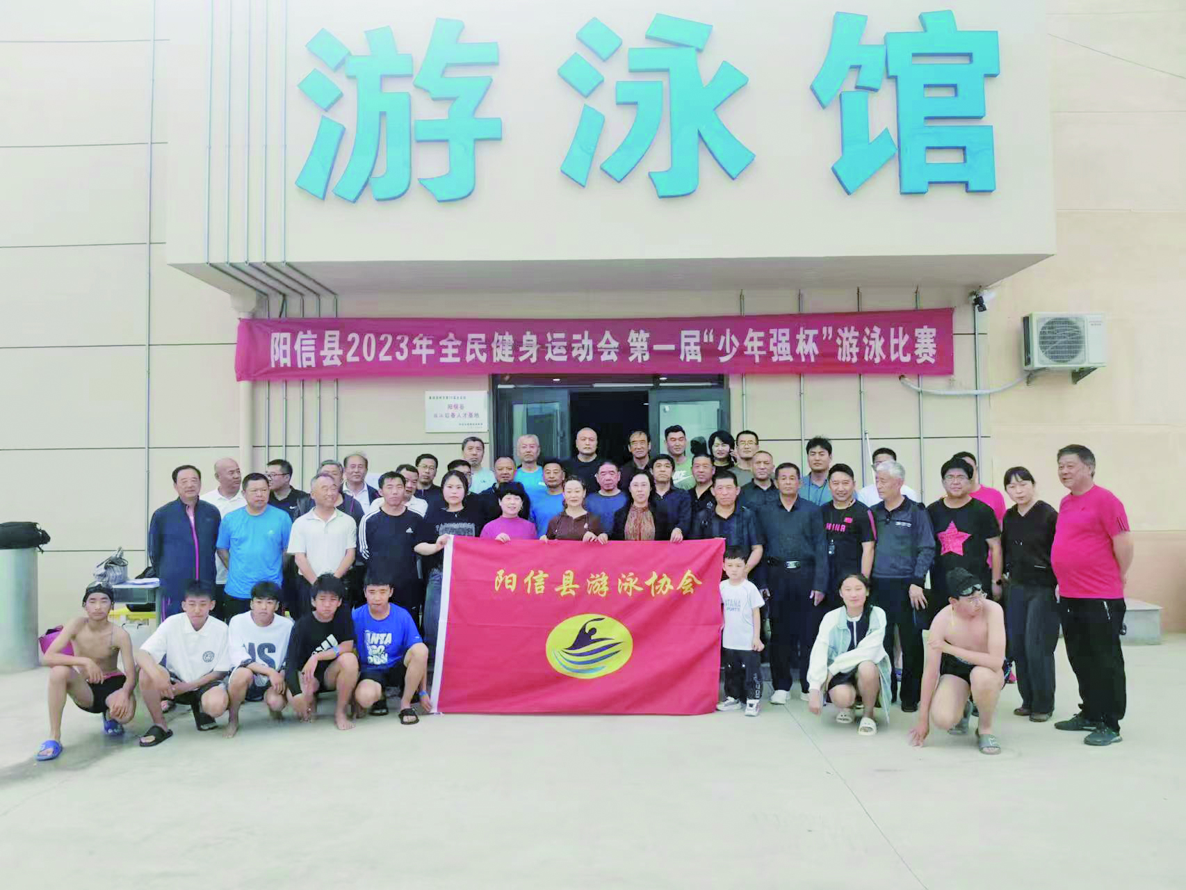 阳信县游泳协会成立于2017年3月,现有会员 100多人,常年坚持野外水城游泳的60余人。协会成立以来,主办办赛、参加市级游泳比赛等活动10 多次、游泳技能培训5次、临县游泳交流活动4次,协会会员在参加2022 年滨州市第六届冬泳比赛中获50米自由泳男子中年组冠军,2021年滨州市第一届职工游泳比赛获个人亚军3 人次、接力女子组亚军1次。协会现有游泳救生员证2个、游泳运动社会体有指导员证2个,游泳裁判员证1个,是我县引领全民游泳健身运动事业发展的中坚力量。