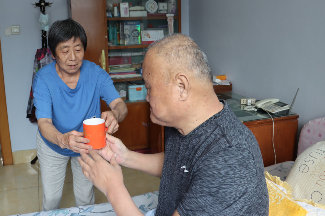 “老张一直讲究干净,我要好好照顾他。”为了能让丈夫舒服一些,姜华文便开始每天都给丈夫洗脸,擦身体,并换着口味的给丈夫准备饭菜再一口一口地喂。由于大小便失禁,姜华文还需要随时为丈夫换洗衣服和床单被褥,长时间的沾水,她双手的皮肤已经开裂,天冷就会冻伤。
