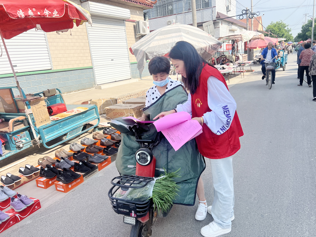 志愿者们积极依托“黄河大集”,向群众科普惠民政策知识,分发了梨乡普法、信访工作条例节选、治安保险等与群众生活密切相关的政策宣传单页,并针对群众提出的问题积极进行细致讲解。同时邀请了金阳街道卫生院的医务工作者现场为群众测量血压,问诊解惑,得到了群众的一致好评。
