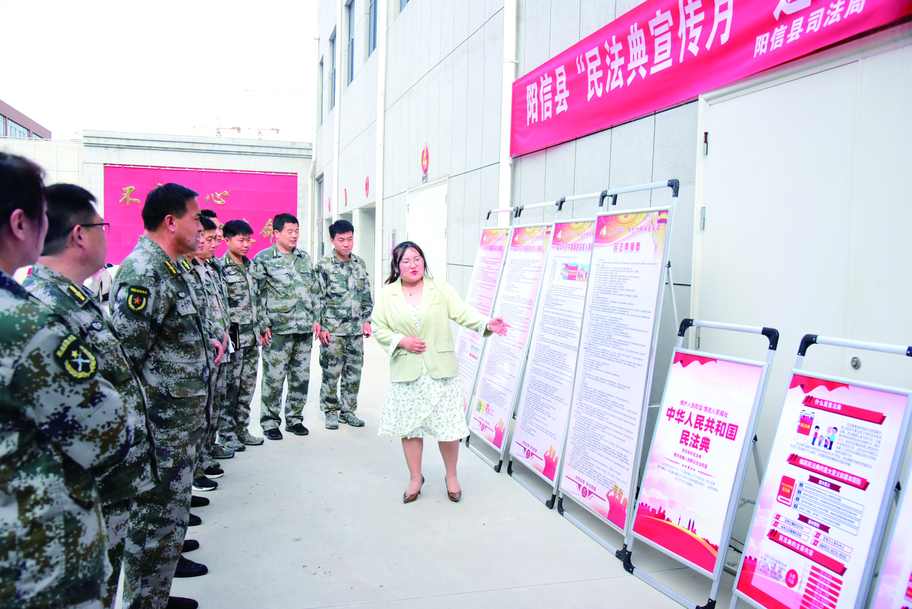 县人武部把《民法典》学习宣传教育列入第二季度机关法纪教育内容之一,部主要领导以《与法同行·“典”亮生活》为主题,为大家详细解读了《民法典》相关内容,而后召开党小组会进行了学习交流和讨论辨析,制发学习题库,开展了应知应会学法答题考核,使大家加深了对《民法典》的了解掌握。利用基干民兵封闭式集训时机,把《民法典》宣传学习教育搬进了训练课堂,安排专人集中进行了辅导授课,摘印了相关知识下发到民兵手中,督促民兵随时搞好自学,既有效地夯实了民兵遵守法纪根基,又激发了大家克服酷暑炎热、练兵备战的参训热情。主动联系县退役军人事务局协调县司法部门组成《民法典》宣讲小组来到县人武部开展了“送法进军营”活动,宣讲组成员一边以大家关注的热点难点问题为机关干部职工上了一堂贴近实际的法纪教育大课,一边用展板进行现场直观讲解,他们图文并茂,绘声绘色的宣讲,不时赢得大家阵阵掌声。