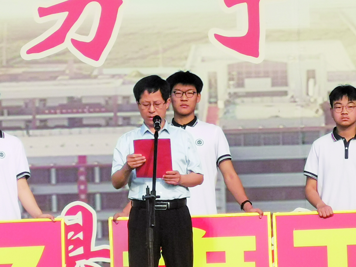 升国旗、唱国歌,鲜艳的五星红旗冉冉升起。校长朱洪彬慷慨致辞,为高三学子壮行,希望高三同学保持自信,以一份愉悦和从容的心态来迎接高考,在最后的时间里,集中精力,聚精会神,注意方法,讲究策略,顽强拼搏,力争在高考中发挥出最佳水平;高一、高二的同学要以高三同学为精神路标,担负起继往开来的重任,珍惜时间,勤奋努力,用汗水书写自己无悔的青春。