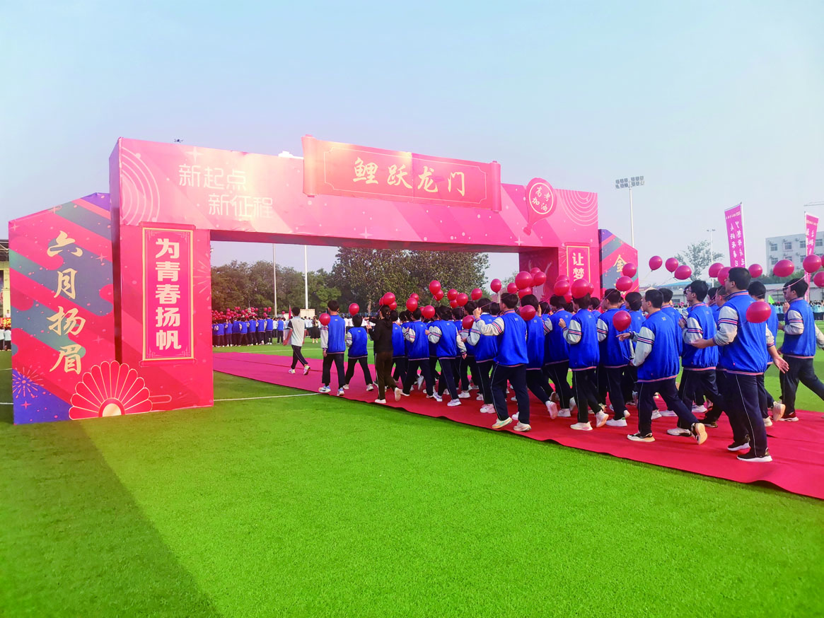 伴着铿锵的旋律,壮行活动现场红旗招展、彩旗猎猎。高三各班同学信心满满绕场环行一周,神采奕奕大步跨过“龙门”,高一、高二2000余名同学一起摇旗助力、挥手致意。声声祝愿声席卷校园,句句关心温暖心间。