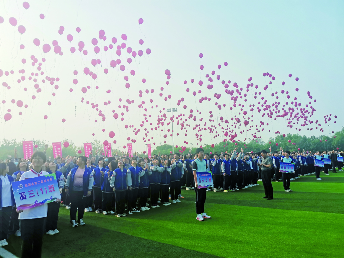 高三学子集体宣誓:十年磨剑,六月试锋;长缨在手,成竹在胸……声声呐喊,响彻云霄。伴随着催人奋进的铮铮誓言,高三学子集体放飞梦想气球,2023只火红的气球带着“六月扬眉,金榜题名”的美好祝福腾空而起,步步高升。活动现场一片欢腾,阳光自信的青春风采溢满整个校园。