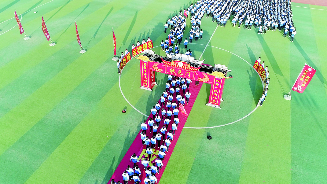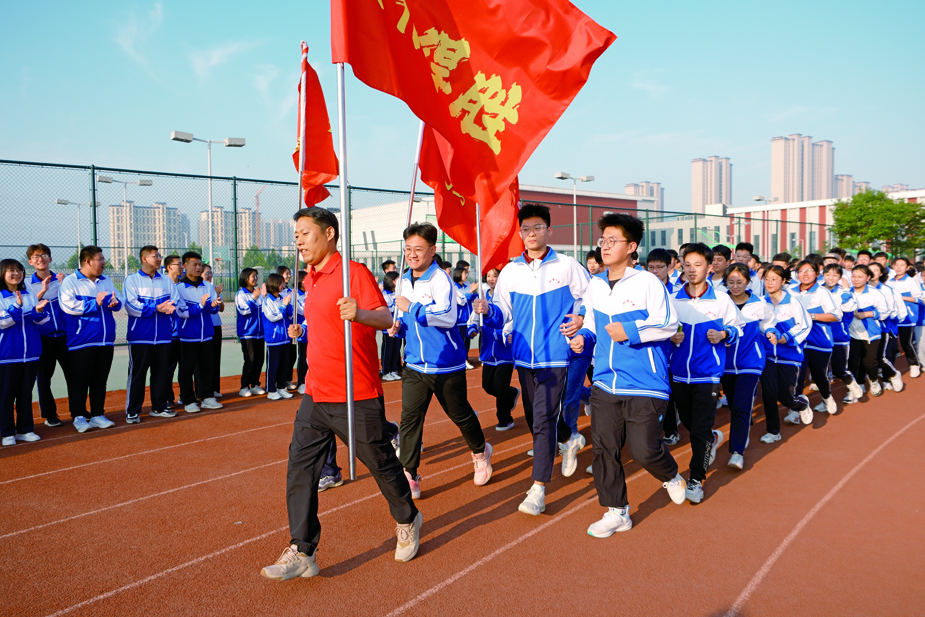 青春不负凌云志,热血铸就成功梦。为青春壮行,赴理想之约,韩永义主任高举“旗开得胜”帅旗,带领全体高三师生绕操场一周,接受高一高二的呐喊助威,以奋进奔跑表明壮志,以破竹之势,一举夺魁。