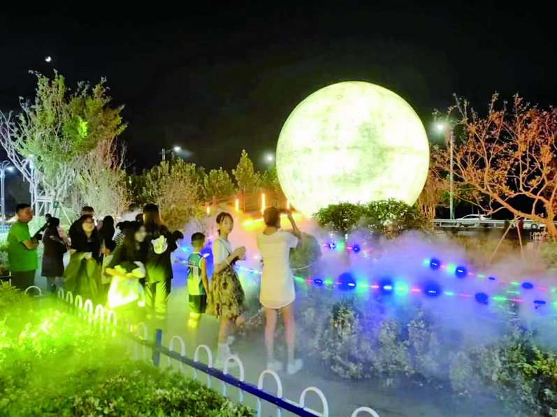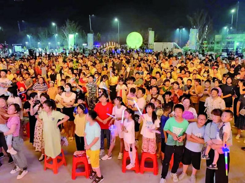 这次活动内容丰富,美食“吃起来”,烧烤、炒菜、小吃等应有具有,充分体现了赶“黄河大集”,品“劳店味道”。美景“游起来”,劳店镇曲艺非遗文化广场有大庄戏楼、网红月亮、网红桥、空脸雕塑、网红路标等,同时引入雾森系统,云雾缭绕宛如“仙境”,冰爽十足。集市“逛起来”,阳信将工艺美术品、DIY手作、创意盲盒、鲜花...接地气的儿童玩具等汇聚一隅,打造青春集市,融入手造、非遗产品和项目,吸引众多亲子群体前来游玩、购物,让手造“强起来”、非遗“活起来”、集市“逛起来”。节目“演起来”,每天活动都是灯光秀开场,歌曲、魔术、乐队等演出,节目每天更新。花样游戏多多,有吃粽子比赛、喝啤酒比赛、吃西瓜比赛等。