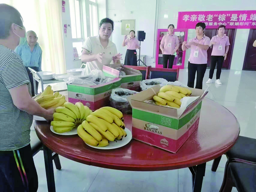 6月21日上午, 我县婚恋服务有限公司一行10余人走进东部中心敬老院 ,看望居住在这里的老人们,为他们送上节日的“香粽”,并为老人献上了精彩的文艺表演。