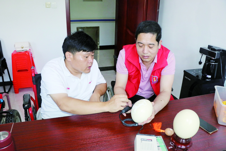 商店镇“如康家园”坐落于阳信县东部养老院内。内设有辅助性就业室,日间照料室,康复训练室,文体娱乐室,技能培训室,展览室,直播室等功能室。可对园内残疾人开展辅助就业,日间照料,康复训练,读书休闲等多功能于一体的综合服务。“如康家园”引进全国助残公益品牌“荔枝花开”如卫艺术工作室各类文创、非遗、手造等项目,项目继承传统与发展创新相结合。对接书画及蛋雕、面塑、剪纸、动漫设计、网络直播、葫芦雕刻及葫芦烙画、ps修图、手工艺编织等。在技术方面,由经验丰富的“如康家园”残疾人之家负责人王如卫和学员面对面、手把手传授。通过帮助残疾人就业,增加残疾人自信心,促使他们自立、自强,过上幸福美好的生活。学会面塑手艺的员工史俊霞说:“每天忙了家务去,加工这个面塑,一天能轻轻松松的收入一百二三十块钱。”“我一天能做一个鸵鸟蛋,做完里以后收入是200块钱。”正在搞蛋雕的员工刘丙申高兴地说道。“如康家园”残疾人之家负责人王如卫介绍:“目前,我工作室带动13名重度残疾人就业,工作室有蛋雕、剪纸、面塑、葫芦烙画等项目,学的好的学员一天下来收入能到一到二百元。”