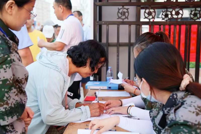 早上天还没亮,行宫庙的居民们难掩内心的喜悦,早早的来到了分房现场。信城街道的干部们也早已在现场等候,做好维持秩序、审核入场材料,引导群众入场等候,分房前期工作有条不紊地进行着。