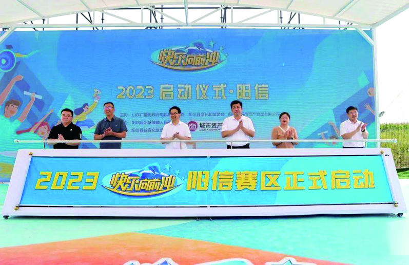 8月19日上午,山东电视综艺频道王牌节目《快乐向前冲》阳信赛区在我县阳光田园小镇启动。县委副书记郭昕出席活动并致辞,县领导李华伟、山东广播电视台电视综艺频道副总监谢海平等领导参加活动。