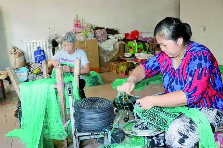 本报讯 在商店镇兴商村商树贵的农家小院里,妻子刘国芹正手把手传授扇贝笼加工技术,丈夫商树贵验收着各村送来的扇贝笼成品。商树贵在农家小院办的扇贝笼加工厂深受农村中老年人欢迎。