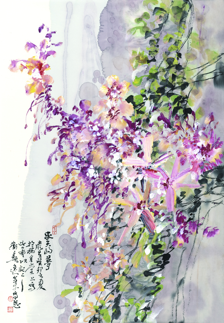 花开如梦,同样,岁月并无痕迹。时光留给我们的恰恰是值得回忆的人和事。各种经历如白驹过隙,烟消云散处,我们依旧在路上。我珍惜所有走过的路、所有经历过的事和即将发生的一切。宣纸上的五彩斑斓,留下了我们永恒的探索。尽管这种探索充满了未知数,却永远是新奇和难以忘怀的。