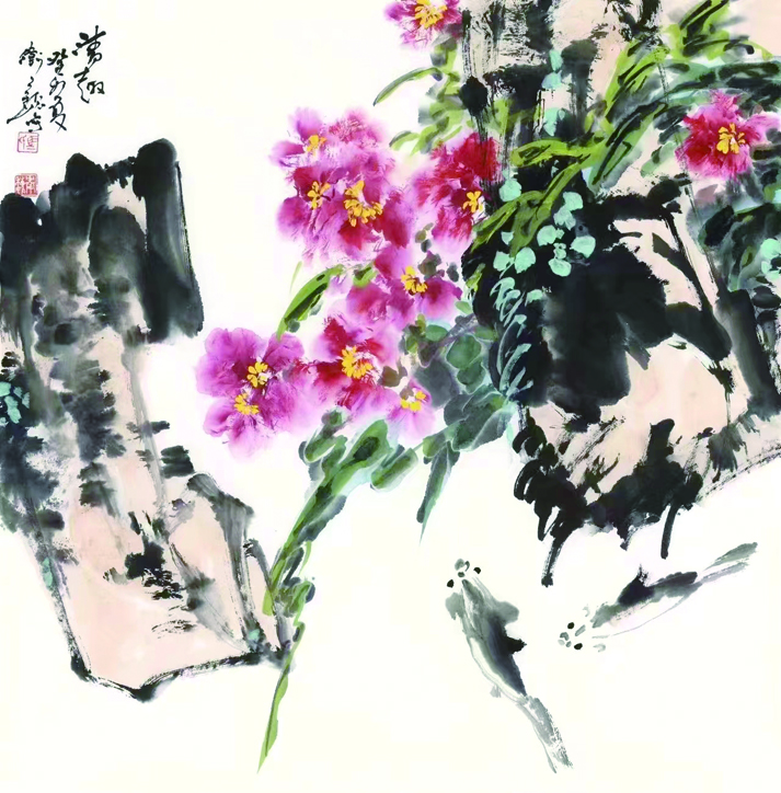 我总觉得,宣纸上的挥洒恰恰是美好年华的一种回忆。落笔的刹那间芳华永驻,水墨交融间便有了人生的升华。眼前的花儿在纸上绽放,她把最美丽的一面留给了人间。