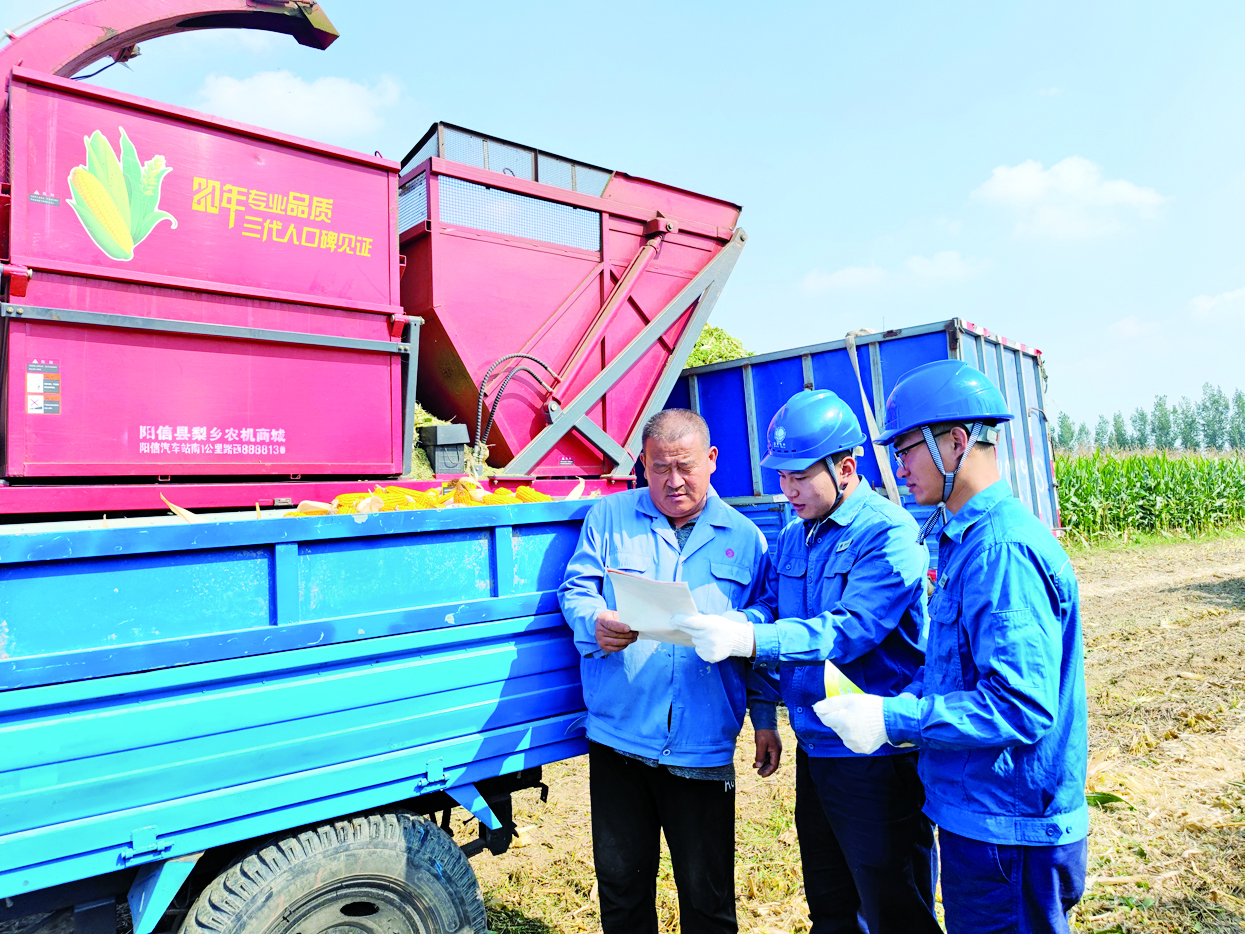 眼下正值秋收季节,为保障辖区秋收期间用电安全、稳定,国网阳信县供电公司制定详细保电计划方案,组织工作人员走进田间地头,积极开展送安全、送服务、送技术等系列活动,多措并举保障秋粮生产供电需求,用实际行动服务农户秋收,电靓乡间好“丰”景。