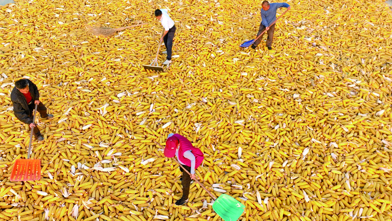 眼下正值秋收季节,金阳街道王木匠村家家户户都在晾晒收获的玉米,玉米铺满农家小园,谱写乡村农家丰收新景图。 (魏长平 贾士清)