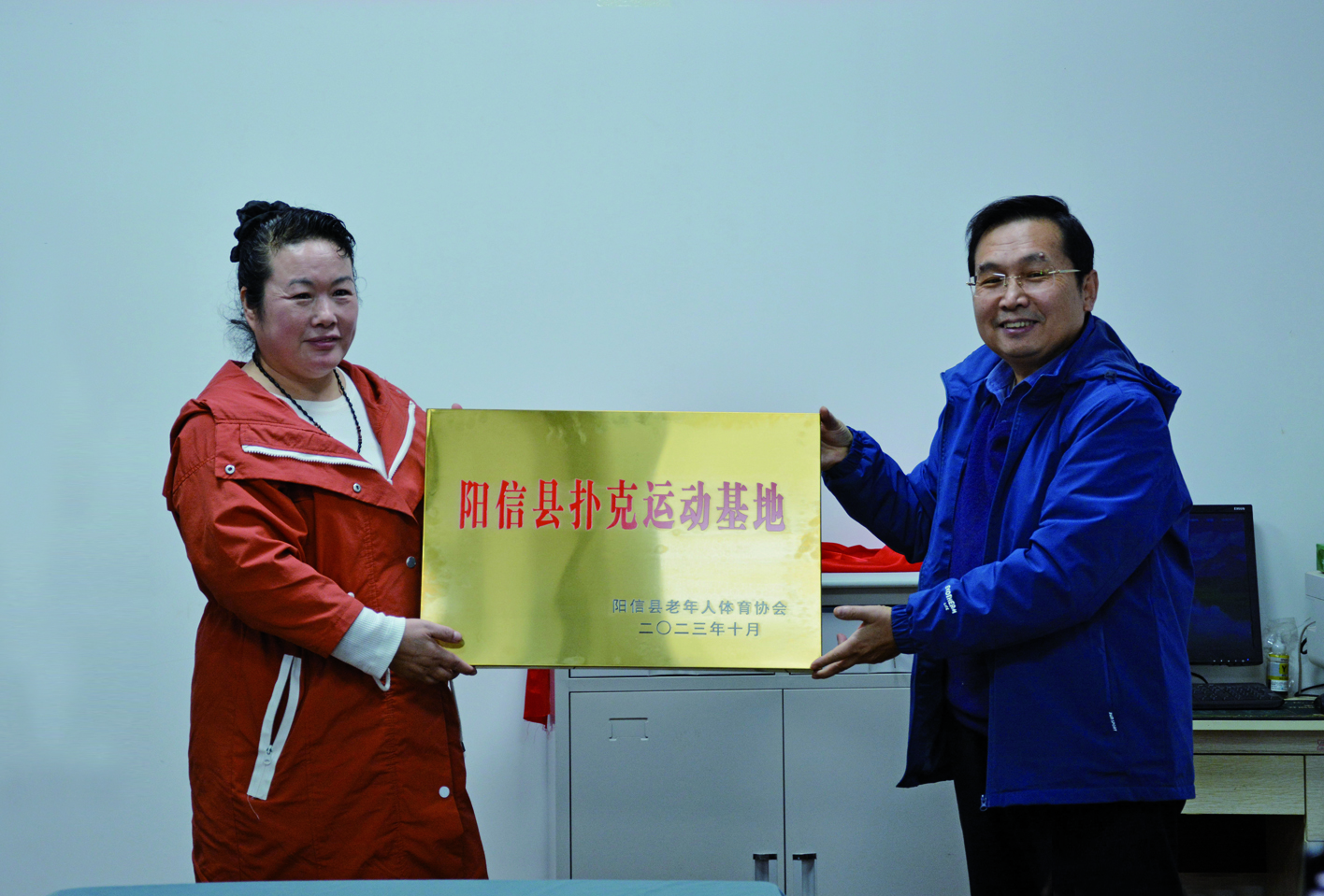 11月12日,县老年体协第一家扑克运动基地落户启善企业管理咨询服务有限公司阳信分公司,县政协原副主席、一级调研员、县老体协主席岳金辉向启善企业管理咨询有限公司阳信分公司业务经理张玉清授牌。