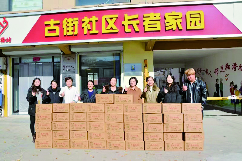 11月24日,阳信滨州市东盛源(伊盛源)食品有限公司工作人员一行5人,冒着严寒开车将价值一万多元的牛肉大葱水饺送到阳信古街社区长者家园(养老服务中心)的老人,以表达企业对老人的关爱。
