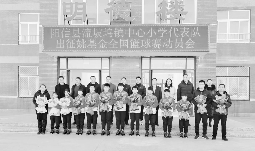 12月12日上午10点,流坡坞镇中心小学举行“姚基金”全国篮球赛队员欢送及捐赠仪式活动。流坡坞镇中心小学代表队作为“姚基金”篮球赛山东省第一名,即将赴昆明参加全国比赛。(本报通讯员)